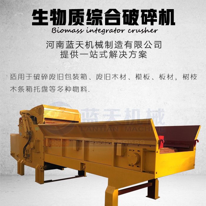 生物質(zhì)綜合破碎機(jī)是河南藍(lán)天機(jī)械制造有限公司在模板破碎機(jī)本身設(shè)備的基礎(chǔ)上升級(jí)而成的設(shè)備。該設(shè)備集合了模板破碎機(jī)的優(yōu)點(diǎn)拋棄了模板破碎機(jī)不能破碎大塊物料的缺點(diǎn)而研發(fā)的設(shè)備。生物質(zhì)綜合破碎機(jī)適合破碎廢舊包裝箱,模板,板材,樹(shù)枝,木條箱,托盤等多種物料。【使用范圍】:生物質(zhì)綜合破碎機(jī)可加工帶釘子木材、木托盤、工地廢舊模板、木托架、廢舊家具、樹(shù)墩、樹(shù)樁、木頭、模板廢料、房屋拆遷廢料、廢舊門窗、家具等物料,不限進(jìn)料尺寸進(jìn)行破碎?捎糜谏镔|(zhì)發(fā)電廠、做燃料、燒火、生產(chǎn)鋸末前置工序等專業(yè)的粗破設(shè)備。