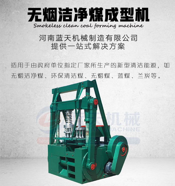 河南藍天機械制造有限公司生產(chǎn)無煙潔凈煤成型機目的在于面對當今中國環(huán)境污染,霧霾困擾等問題促進無煙潔凈煤民用使用率。