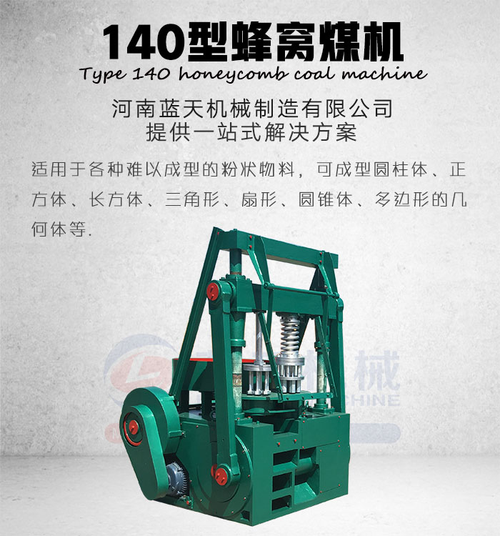 河南藍(lán)天機(jī)械制造有限公司生產(chǎn)的140型蜂窩煤機(jī)可生產(chǎn)直徑145mm以下、高度100(mm)以下的粉狀物料,還可以生產(chǎn)120型號蜂窩煤機(jī)所能生產(chǎn)的各種尺寸大小,其重量比小型120重800余公斤,個頭功率明顯大于120。整機(jī)大方、穩(wěn)定、耐用、連續(xù)性強(qiáng),不用打地基、后續(xù)安裝,只需放在水平地面即可投入使用。
