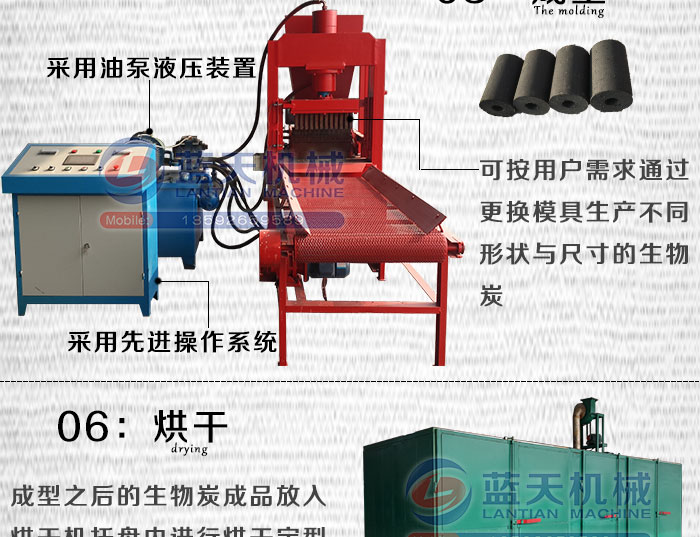 藍(lán)天機械生產(chǎn)的生物炭成型機主要用于成型生物質(zhì)廢料炭化之后的物料,通過更換模具可實現(xiàn)一機多用,滿足用戶的不同需求。液壓生物炭成型機采用PLC全程智能控制,并配備數(shù)據(jù)輸出裝置,實現(xiàn)智能無人操作。藍(lán)天機械是河南地區(qū)專業(yè)生物炭成型機廠家,咨詢更多相關(guān)可撥打官網(wǎng)熱線。